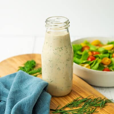 Tahini dill dressing is thick, creamy and made with 6 simple ingredients. Ready in just 5 minutes, no special equipment needed! This creamy vegan dill dressing is great on salads, pasta salad, potato salad or as a dip for veggies. This vegan dill dressing is dairy free, gluten free, Whole30, paleo and low carb friendly.
